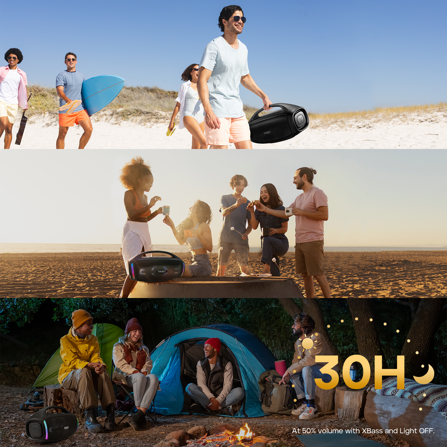Transform your party into a virtual concert extravaganza with TRIBIT party speaker! With TRIBIT's innovative X-3D algorithm, you'll be enveloped in immersive sound that adds an extra layer of excitement and joy to your gatherings, making every moment more fun and unforgettable!