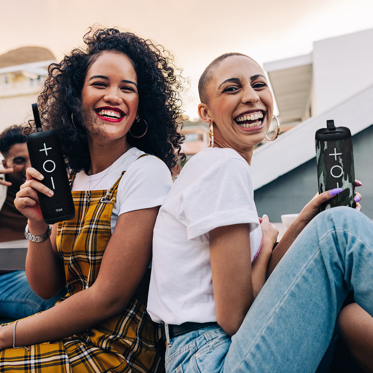 Enjoy the same song with Wireless Party Chain. You can wirelessly connect two Tribit 360° Sound Waterproof Bluetooth speakers together to enjoy amplified sound.